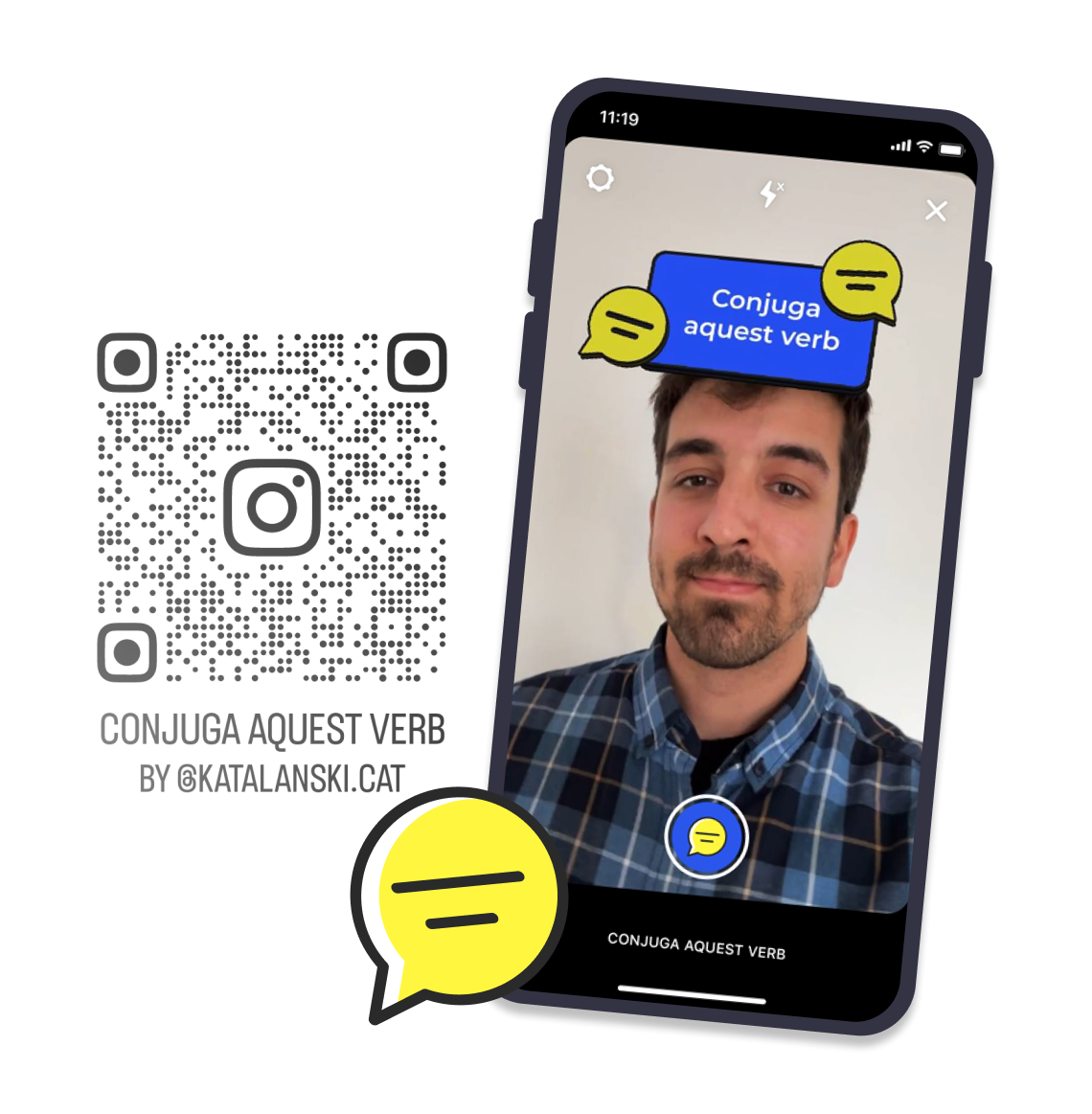 Чтобы дополнительно практиковаться спрягать глаголы, вы можете воспользоваться моим фильтром в Instagram. Переходите по ссылке в приложение или сканируйте этот QR-код.